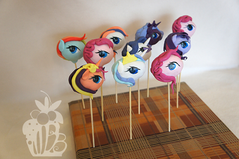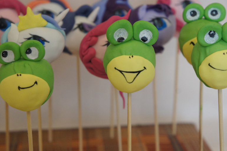 Это для нас были сделаны эти замечательные кейкпопсы. Дома они произвели фурор. Дочка, для которой они заказывались была в полном восторге, когда из увидела. Проблема только в том, что она не разрешает их есть. Слишком красивые. Мы пока съели только всех лягушек (заказывала для мужа, а то он обиделся, что ему ничего не заказали) — они оказались оочень вкусными, просто потрясающее шоколадное тесто. Анечка, спасибо огромное за такую красоту и вкусноту!!!!