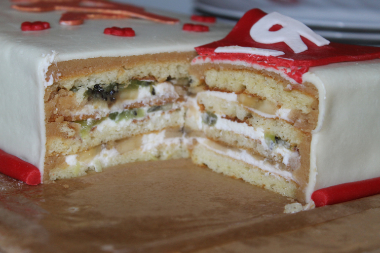 Не люблю свежий банан в выпечке только карамелезированный....) но это чисто моё) ....а киви вообще конфликтует с любой молочкой..лучше ягоды) но это чисто моё мнение...по поводу крема под мастику...может масло или сгущенка не очень хорошего качества?) ну если так не нравится ганашем тогда выравнивайте. Ну а ..разрезик мням ням)