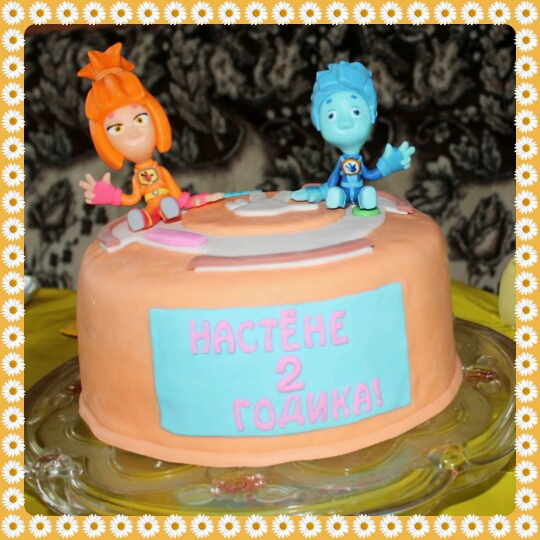 Торты детскиеДочка любит фиксиков, поэтому решила сделать торт с ними. Радужный бархатный бисквит с швейцарской меренгой. Уже потом подумала, что на надписи можно было сделать шляпки от винтиков, смотрелось бы лучше. Но, слишком поздно это сообразила. Фиксиков слепила сама из принцессы. Растащили по частям, хотя на мой взгляд, эта мастика не очень вкусная)).Торт съели весь за один присест, я даже удивилась))