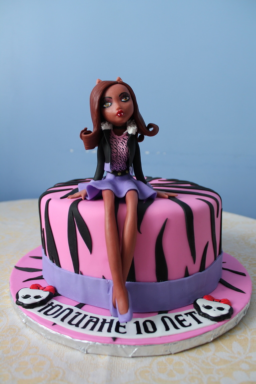 Татьяна, если позволите, совет. Постарайтесь фотографировать в более освещенном месте, красота торта теряется в сумраке :). Хорошие пропорции у торта, высокий-ладный. Черепушки не поленились сделать :). Куколка премилая, но из-за освещения торт " не играет".