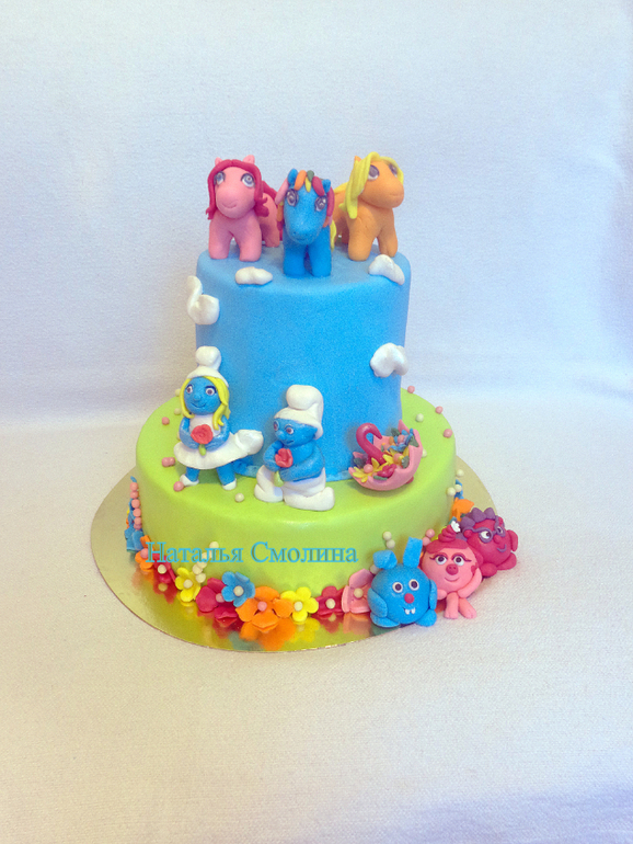Торты детскиеВанильный бисквит, шоколадный мусс с орехами, баварский крем.