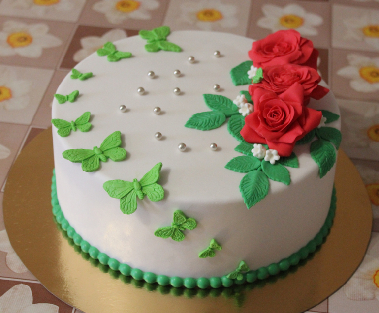 . А последний еле придумала как сделать( женщина хотела чтобы он был разделен на 4 части и чтоб в каждой что-то было, а в одной цветок какой нибудь) еле придумала чем его поделить на части( решила проводами), а цветок вообще лепить не стала(чушь какая-то). В итоге принесла ей торт она обрадовалась что я не прилепила цветок и понравились провода