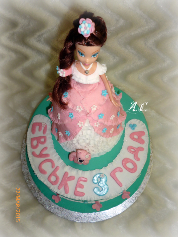 Торты детскиеЗаказали торт-куклу, но так, чтоб она стояла на торте. Первый раз делала куклу, первый раз делала двухъярусный.