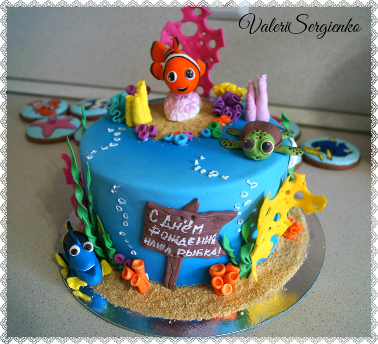 Торты детскиеТортик на тему "В поисках Немо",вообще полюбилась мне "морская" тема тортиков)))