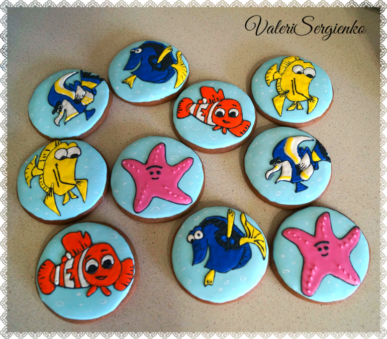 торт очень милый! тоже обожаю морскую тему. А прянички просто загляденье.