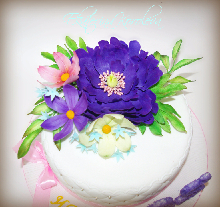 Торты для женщиннаверно несуществующего цвета)) и какие-то еще выдуманные цветы)) наполеон, 3,9 кг Пыталась вернуть цвет в редакторе, но не очень получилось, здесь немного с синим оттенком, в жизни же прям фиолетовый фиолетовый был...