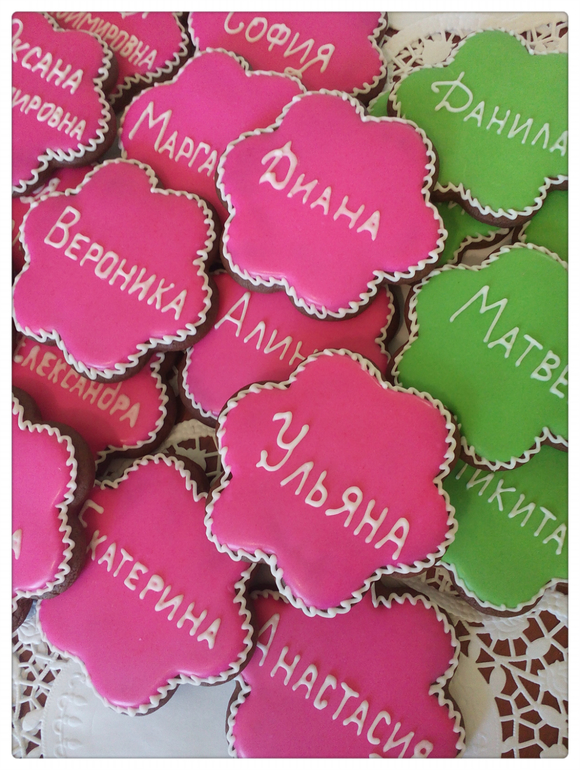 Печенье,пирожные,конфеты, выпечкаУгощение для деток в виде именных шоколадных пряников с ароматом имбиря и корицы по случаю празднования дня
