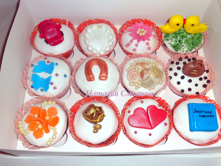 Капы: 1. морковные, с соленой карамелью и крем-чиз, шоколадные с варенкой, ванильные с цукатами и крем-чиз. внешний вид также продиктован мамой, как 12 пожеланий дочери))