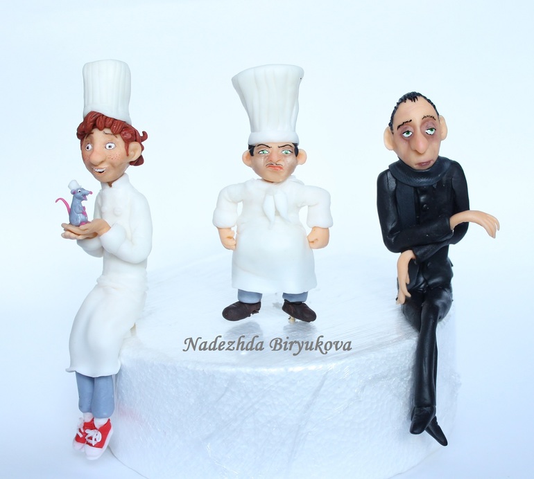 Самого мышонка вообще не просили, но я из спортивного интереса решила его слепить, итого он ростом 2 см )) Как же торт про Рататуя без самого Рататуя? ))