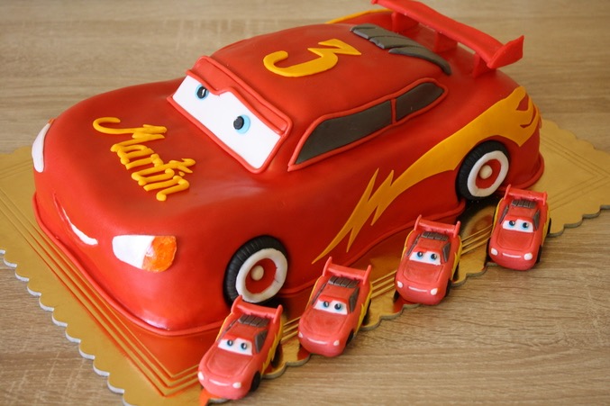 Ой, это мой тортик, один из первых, делала 2 года назад. Маленькие машинки из молда, полностью мастичные.