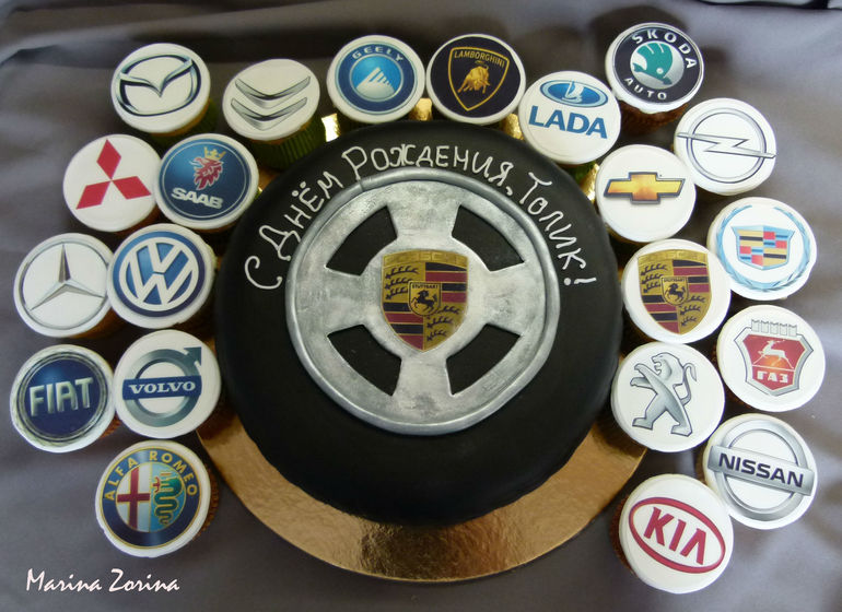 Торты для мужчинторт для мальчика на 4-х летие. безума от машинок, поэтому торт в виде машины был, в виде марок машин на торте тоже, в этот раз колесо и кейки. в торте суфле на кокосовом молоке, кейки морковные, ванильные с апельсиновым курдом, с вишневым "желе"