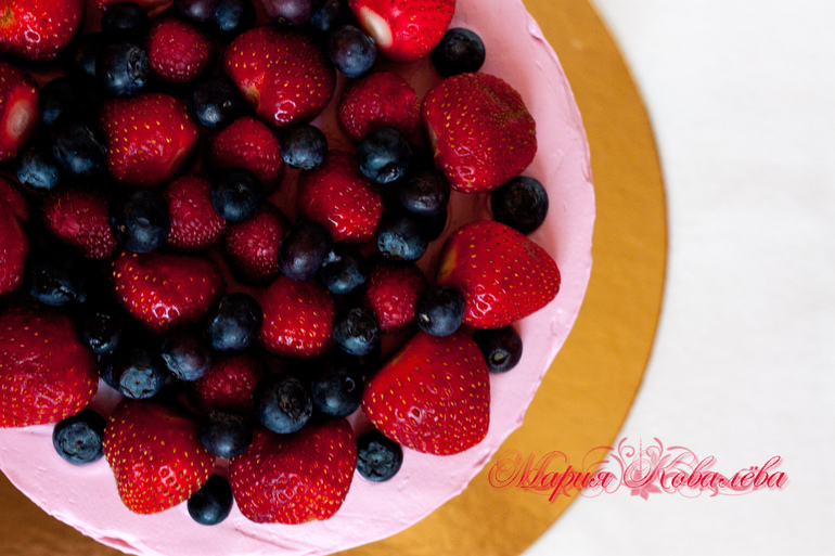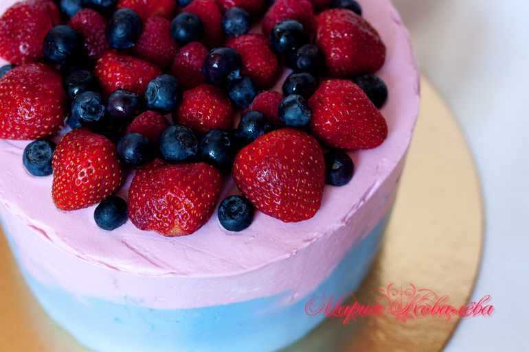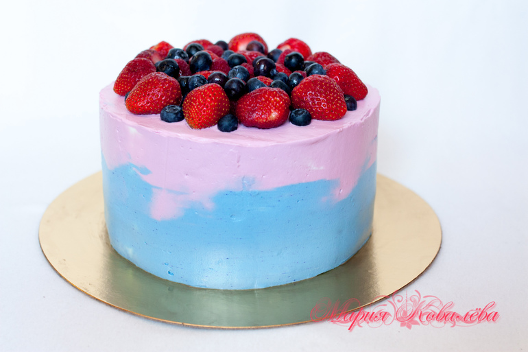 Украшение тортов кремом,шоколадом, фруктамиВнутри радужный торт по рецепты Ларисы Вольницкой с кремом сливки+маскарпоне, персики и клубника.