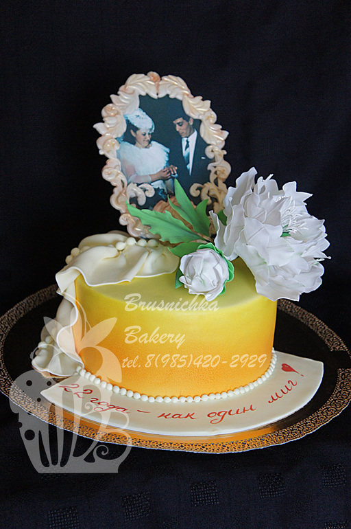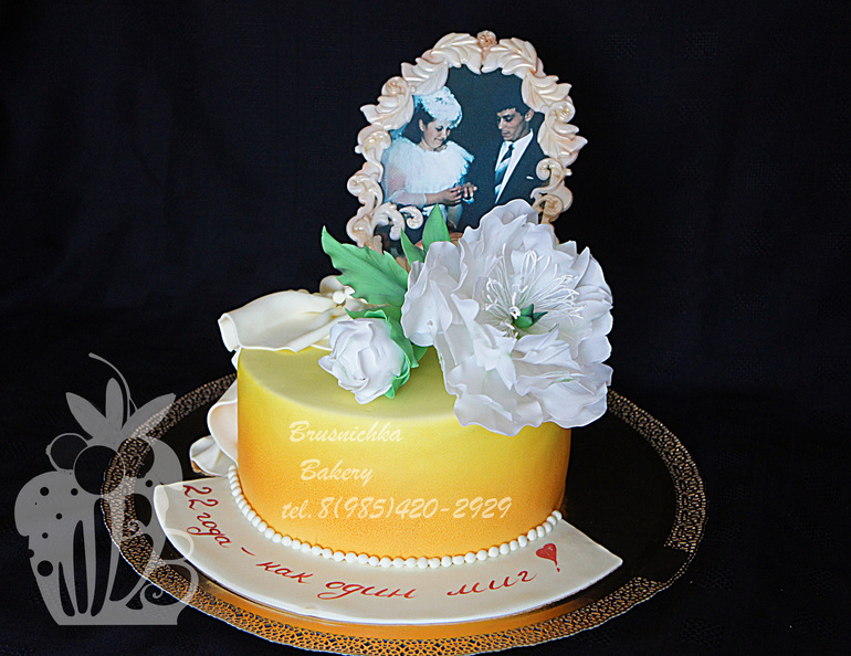 Рамочка хорошая. Качественно стоит...как у молодого....Цвет торта — мой любимый. Около солныщка. Пиончик хороший. Немного листва ....ну да не важно. Молодец Анюта!