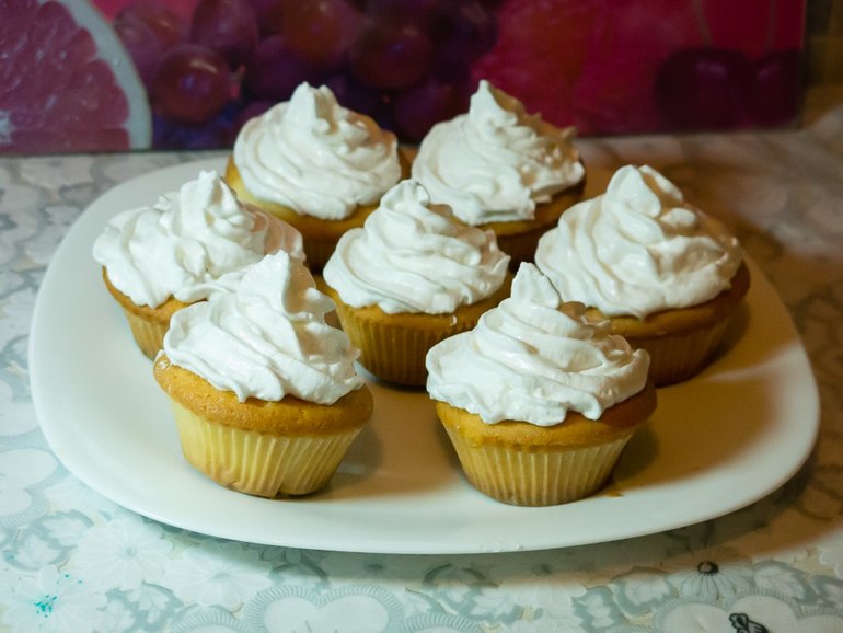 Первые капкейки.)) Вопрос по швейцарской меренге!