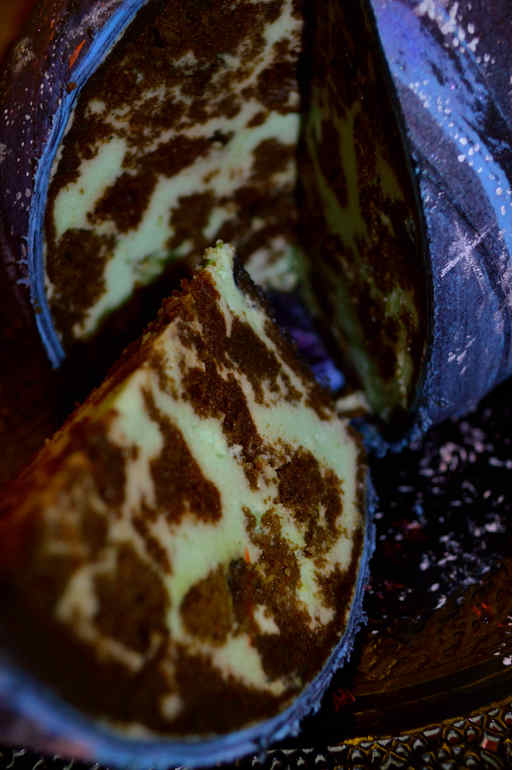 Внутри воздушный шоколадный бисквит на кипятке (на горьком шоколаде и какао) и мятное суфле :)