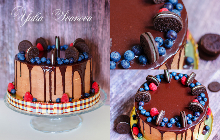 Украшение тортов кремом,шоколадом, фруктамиЭтот тортик для замечательных мальчишек и братьев Сени и Вени заказала их заботливая мама ирина ! Один любит шоколад, другой Наполеон! Нужно было угодить обоим!))