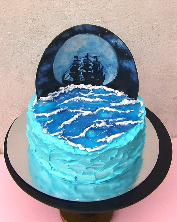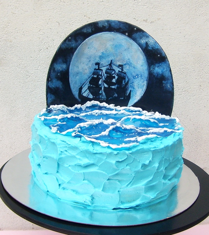 Торт на ДР дедушки моей подруги. На юбилей - 85 лет. Торт не заказной, торт, чтоб порадовать дедушку, который любит рыбалку и морскую тематику.