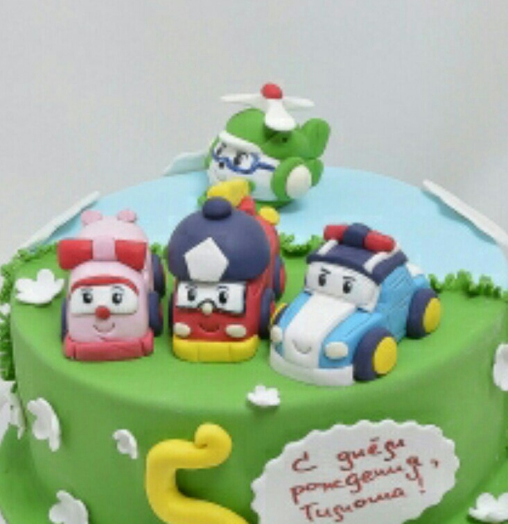 Ох, я тоже с робокарами сижу)) До этого делала Хэлли полностью мастичного, а Поли из рисовой массы. Он конечно легче гораздо.Сейчас вот Рой из картошки, но буду переделывать на рис все же. А так обидно, уже почти сделала его...