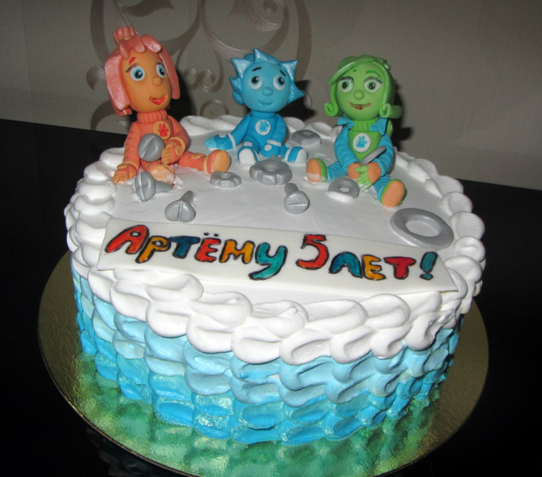 Попросили торт именно с этими героями. И если Симку и Нолика я еще представляю, и они вроде узнаваемы, то зелененькую вообще не видела и не знала о её существовании! Лепила по картинке. Неудачно... Похожа она на Водяного из мульта про Летучий корабль)))