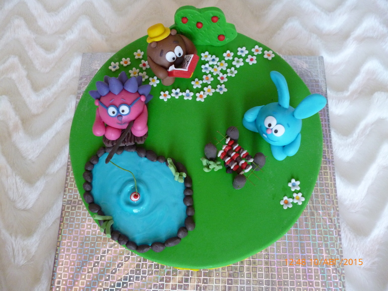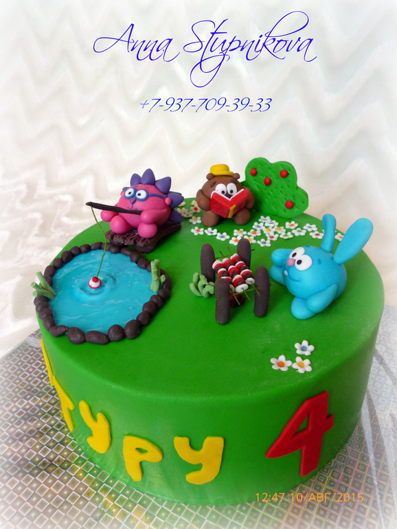 Смешарики лепились в ускоренном темпе с утра. Заказчики успели погулять во дворе, так как пришли раньше назначенного времени. Поэтому весь задуманный декор воплотить не успела....кажется он мне каким-то недоделанным...(( а жаль...