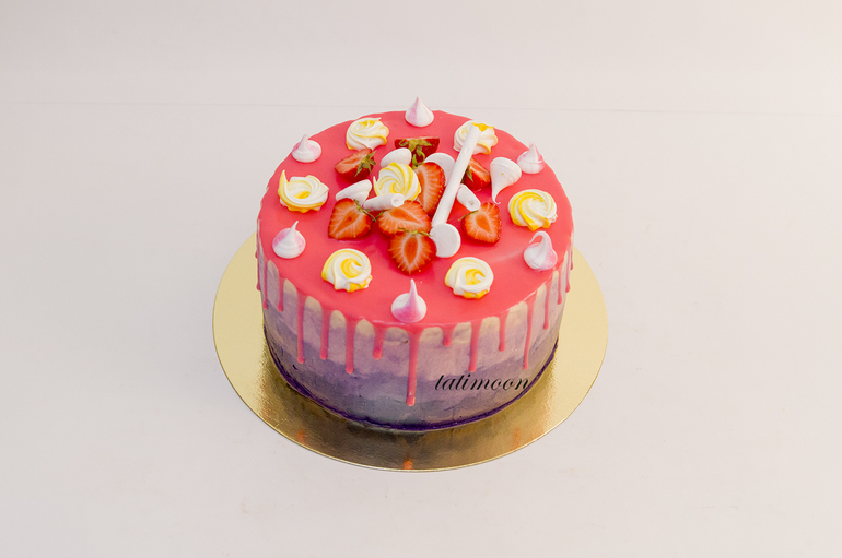 Олеся сама выпекла коржи, собрала торт, выровняла и декорировала.