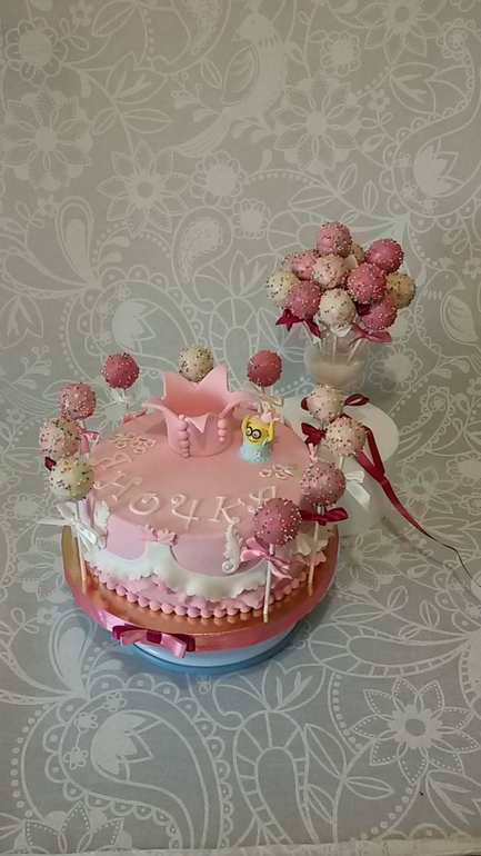 Торты детскиеДевочка Яночка мимимишная принцессочка, и очень ей захотелось еще и миньончика. Поэтому и миньоша тоже принцесска.