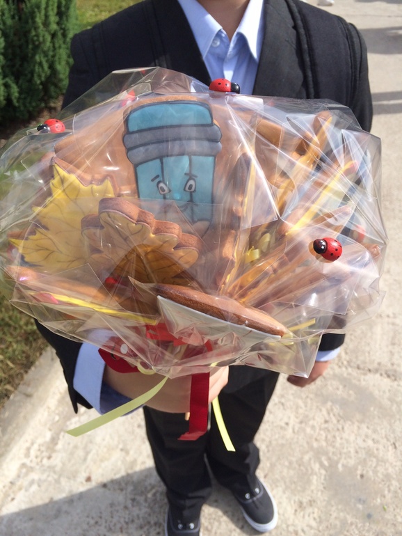 Приятный пряничный букет! Молодец сынуля - гордо держит мамино творенье.