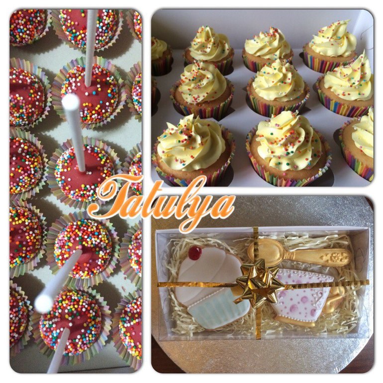 Ванильные капкейки с клубникой и кремом с меренгой, кейкпопсы с сырным кремом - одноклассникам. Коробочка со сливочным печеньем - учителю
