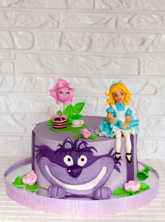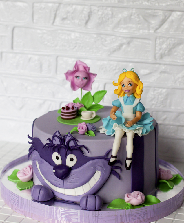 Конечно, это только мне интересно. Но лепила я на днях Дарт Вейдера. И думалось мне о том, что хочется-то Алису в стране чудес сделать. Подумалось - и сбылось. Через час мне пришла СМС-как с заказом на задуманную тему. А к чему я все это? Я такая курица, что очень верю, что наше настроение, настроение людей, с которыми мы общаемся, очень влияет на события в нашей жизни. А Алена - очень светлый, позитивный человек. И, видимо, общение с ней и меня наполнило чем-то добрым и хорошим, после чего хочется работать, растут крылья... и даже исполняются желания! И поскольку торт был очень желанным, а по квартире еще летают Аленкины флюиды, поэтому торт делала на одном дыхании.