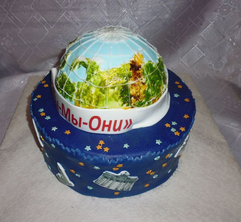 Юля,спасибо за поддержку. Это айсинг, раскрашенный гелевой краской.И меридианы-параллели тоже айсинг - вот тут косяк, который обнаружила на фото уже - они не параллельные....((((( Но расстраиваться поздно - уже съели "скрикамиура". Мастика синня рейнбоу, немного подкрашивала, что бы поглубже был цвет.Космос тоже ....жидковат. Надо было немного нарисовать. Задним умом....плохо продумала и плохо соображала, когда делала.(