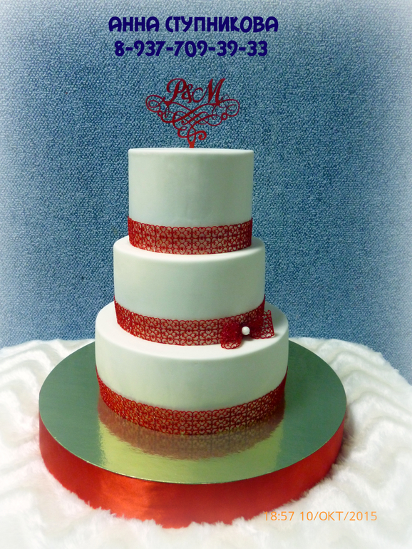 Изначально планировались ленты из мастики, но я уговорила невесту на кружева, в итоге считаю, что мы сделали правильно! Так нежнее смотрится))