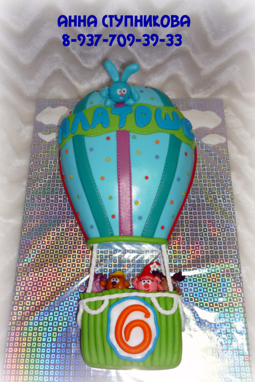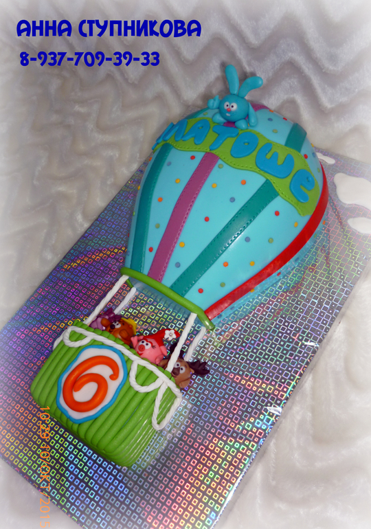 Торты детскиеЗаказали мне воздушный шар со смешариками. Ох уж эти малыши-кругляши)) В общем торт внеплановый, так сказать, потому что на сегодня у меня имелся заказ(о нем расскажу позже, так как он еще на этапе сборки), ну да ладно, взялась, очень просили. Поэтому спала снова мало, снова подъем в 4 утра и вперед....))