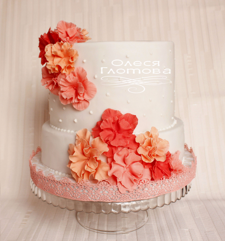 Торты свадебныевес 5 кг, нижний 24х6, верхний 20х15.. внутри нижнего цилиндрическая обманка d10cm для уменьшения веса