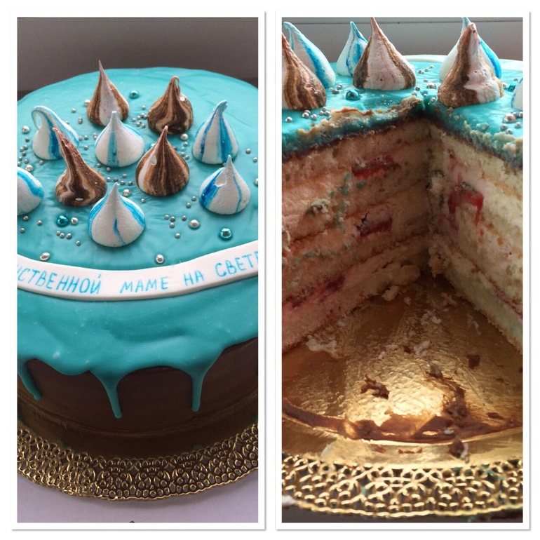 Украшение тортов кремом,шоколадом, фруктамиНежный ванильный бисквит, сливочно-творожный крем, клубника. Вес 2.1кг