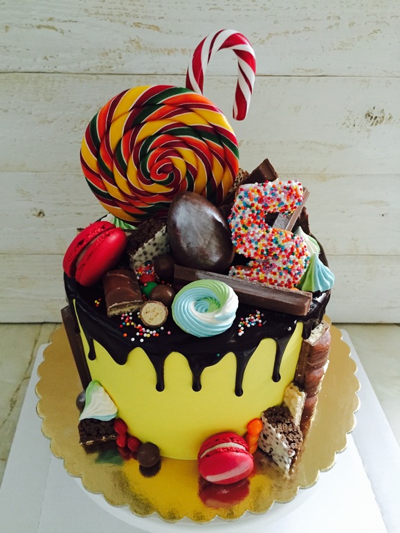 Украшение тортов кремом,шоколадом, фруктамиТортик "Конфетный взрыв" ! Внутри шокобисквит, малиновая пропитка, шоколадный крем, свежая малина, зефирки маршмеллоу!!! И мноооого сладостей! Вес 3,6кг!