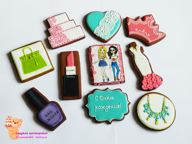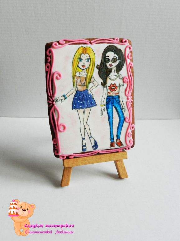 ПряникиПряничный набор для девушки,обязательным условием был пряник с изображением двух девочек-подружек,брюнетки и блондинки))
