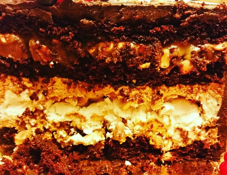 Украшение тортов кремом,шоколадом, фруктамиВот такой торт был у меня сегодня! Внутри один из вариантов "Сникерса": шоколадные бисквиты, крем на варёной сгущёнке, безе, арахис, шоколадный ганаш, карамель, пропитка кофе с молоком! Вес 3,1кг! Под катом ещё фото без окончательного украшения и разрез!