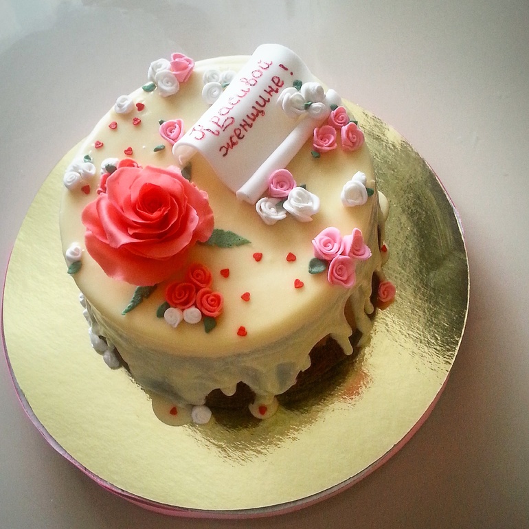 Я не знаю можно ли это назвать глазурью... Это белый шоколад в чистом виде. Он получается очень густым слоем, я залила немного, потеки были маленькие. Заказчица попросила сделать так, чтоб покрыть торт но так, чтоб были просветы . Тогда уж я сделала глазурь, но все оказалось не так просто. Люди в итоге , конечно, довольны, поскольку им чем больше было заливки тем лучше, а мне урок-нельзя так делать . Либо одно-либо другое. У меня по крайней мере совместить не получилось. Ну что делать, и на старуху бывает проруха.
