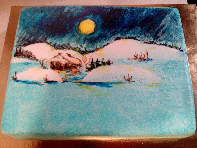 рисовала сама-но шишки рисовала отдельно на мастике-думала просто на торт как аппликацию...показалось скучновато...решила сделать рисунок и шишки в него не вписались....а так хотелось их...вот и впихивала как могла.спасибо -попробую подправить-у меня и с круглыми не очень-а с углами-вообще не сталкивалась еще.