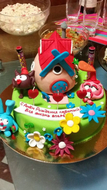 Со свечками и салютом. Жаль, не успела сфотографировать тортик в процессе горения салюта...