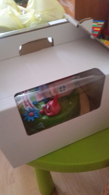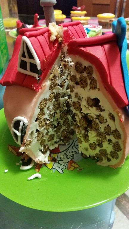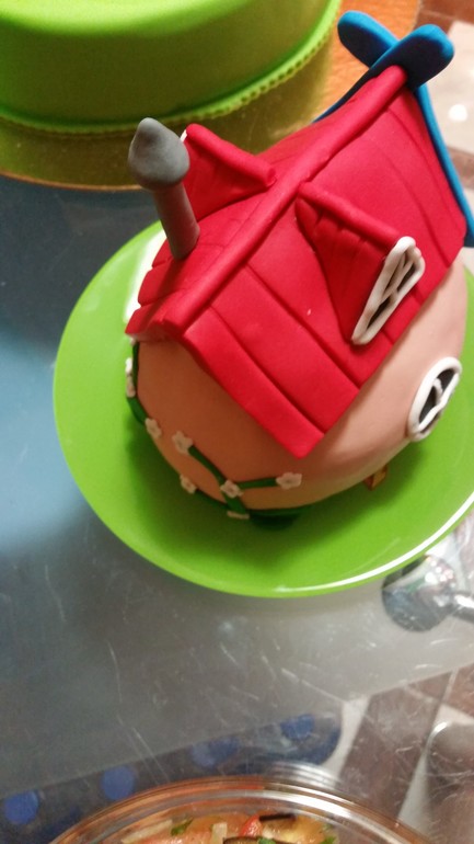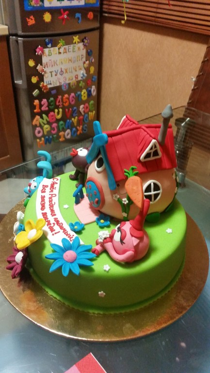 Тортик - 4,200кг начинка творожно-сметанное суфле с персиками, внутри домика воздушный рис.