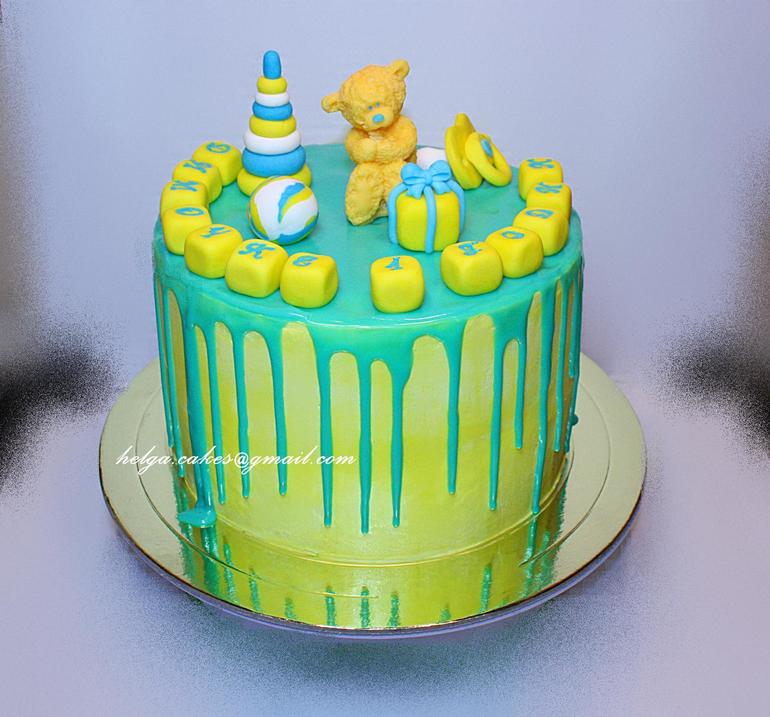 А вот еще один, на годик. Внутри клубнично-фисташковый маковый поцелуй. Вес 3,7 кг