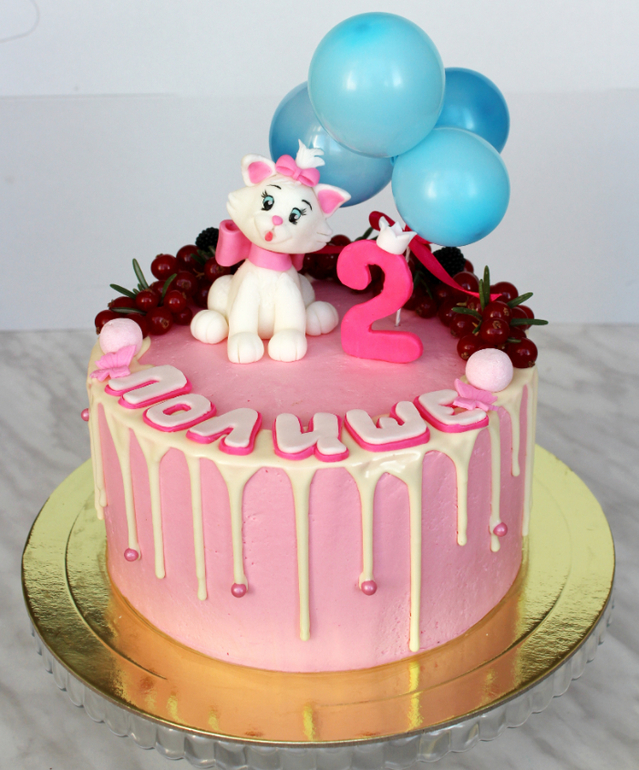 Торты детскиеВот такой для девушки с ББ, на двухлетие ее доченьки. Пожелание было с котенком... в качестве прототипа выбрала я кошечку Мари =)