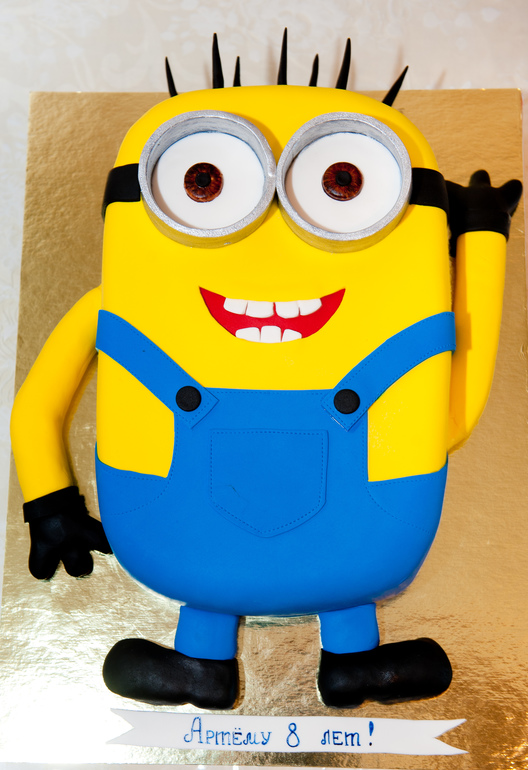 А это для мальчик постарше, веселый миньен. немного скривила ноги, но мне все равно нравится. Внутри ножек и ручек зефирная косичка, значительно облегчила вес. Тортик вышел ровно на 3 кг.