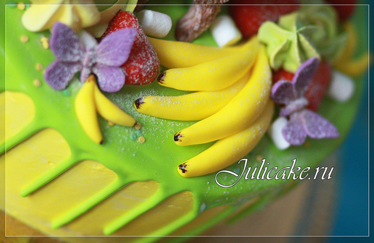 Украшение тортов кремом,шоколадом, фруктамиНа днях делала торт с глазурью "Обезьянка с бананами". Обезьянка делалась по фото любимой игрушки :)) Под катом обезьянка поближе!