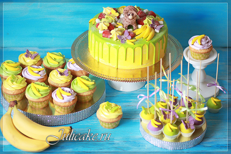 Юля, на ваши работы смотреть одно удовольствие! глаз радуется абсолютно всегда! если бы я решила заказать торт, то непременно сделала это только у вас. Чувство цвета, пропорций, акцентов у вас потрясающее! цвета и подтеки глазури на высоте! про выравнивание кремом я вообще молчу , в этом вы для меня пример! вы меренгой или крем-чизом выравниваете? и интересно какой крем на капкейках? а бананчики мастичные? пойду еще в сотый раз ваши фото пересмотрю!