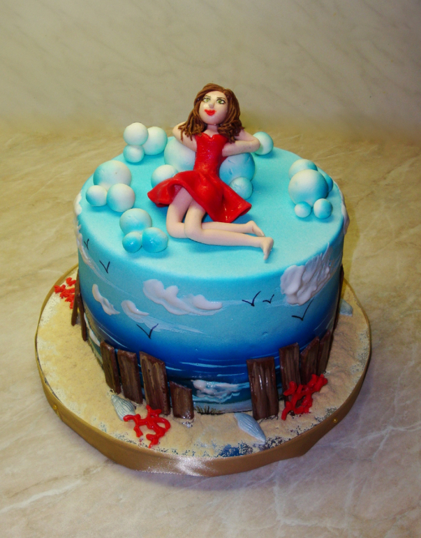 Торты для женщинВнутри ванильный бисквит, пропитанный амаретто, сливочно-творожный крем со смородиной (на удивление, хоть я не люблю смородину, очень она хороша в этом креме оказалась!), йогуртовый крем с персиком. Вес 2 кг. (по просьбе подруги пошла на жертвы микроскопии =)))