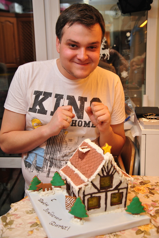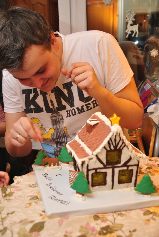 За пару дней до дня Х мы с ребеном озаботились о подарке папе - надо же что-то подарить от дочки - конечно же это что-то должно быть сделано своими руками. Стали думать - а что бы такого..... ага - мы же дачу хотим - было решено "сроить" дом. И тут посетила идея - а почему бы не пряничный!