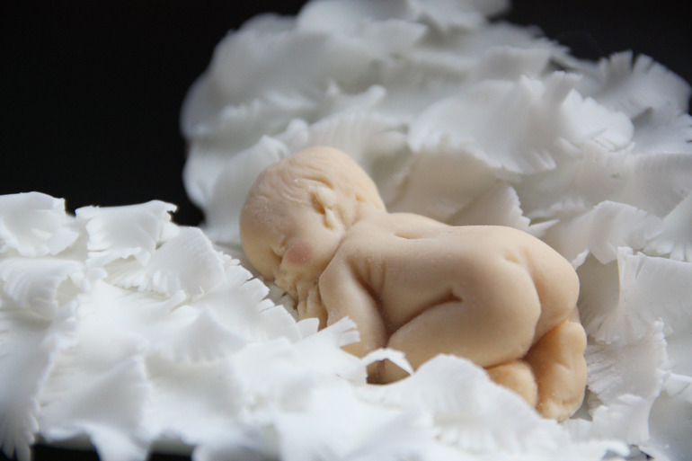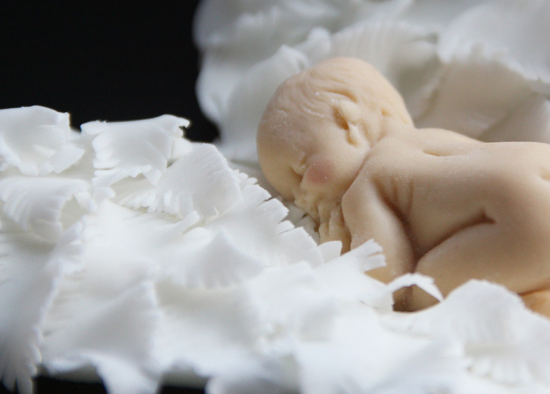 В интернете конечно полно тортов с голыми пупсами, но мне заказчики пару раз сами просили именно одетого - с тех пор всегда одеваю)