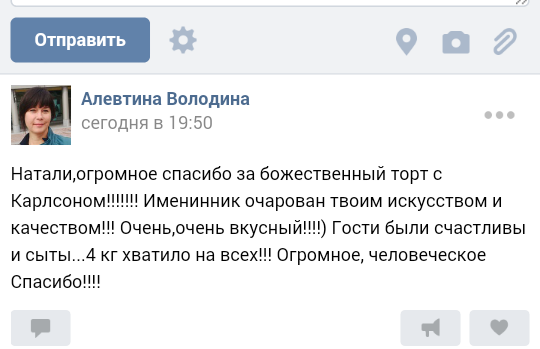 Если ты мужчина в полном расцвете сил, то тебе на День Рождения обязательно подарят такой тортик с Карлсоном!!! Внутри сочный шоколадный бисквит и крем сникерс. Вес 3 кг.